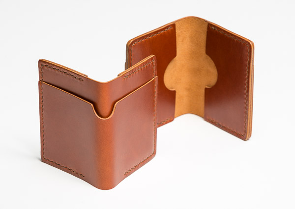 The Cohort Wallet is a bifold wallet made from world famous Horween Chromexcel leathers stitched completely by hand with a knotted saddle stitch, the strongest and longest lasting method possible. It features two interior card pockets and a full length easy access cash pocket on the exterior. Easily holds 6-8 cards and a stack of cash.
